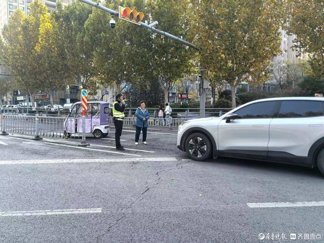 11月11日,情报员“建荣陈”向齐鲁晚报官方客户端齐鲁壹点情报站报料称,今天中午12点35分,济南天桥区官扎营新街与堤口路交叉口,自北向南方向发生一起交通事故,一辆白色suv与一辆电动三轮车发生碰撞,交警已经赶到现场处理。